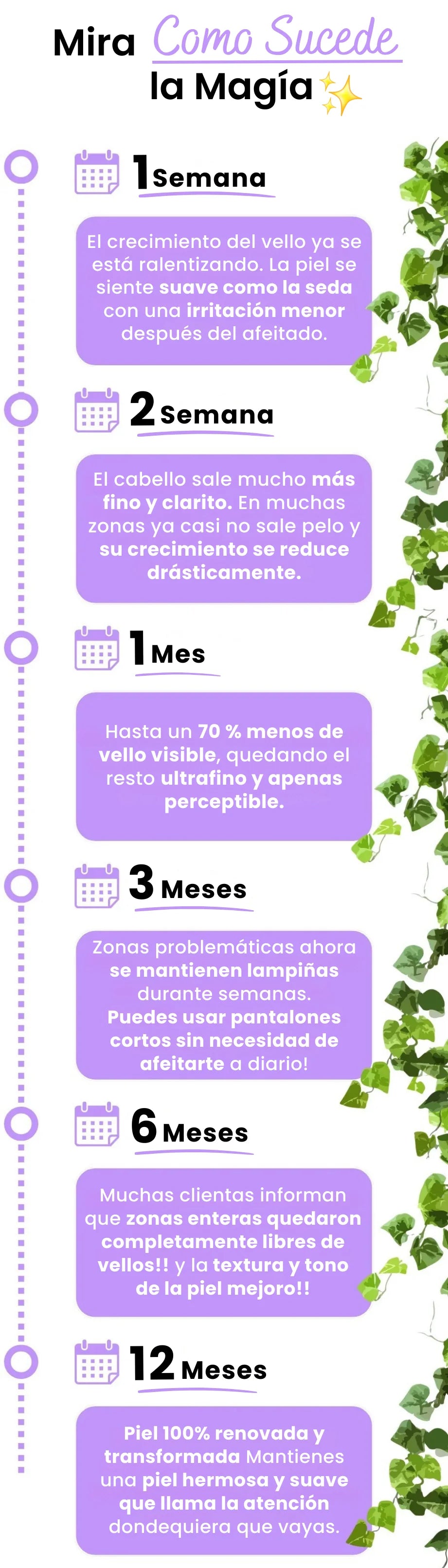 Con el uso constante, cada depilación dura más y tu piel se mantiene suave, lisa y libre de vellos por mucho más tiempo. ✨
